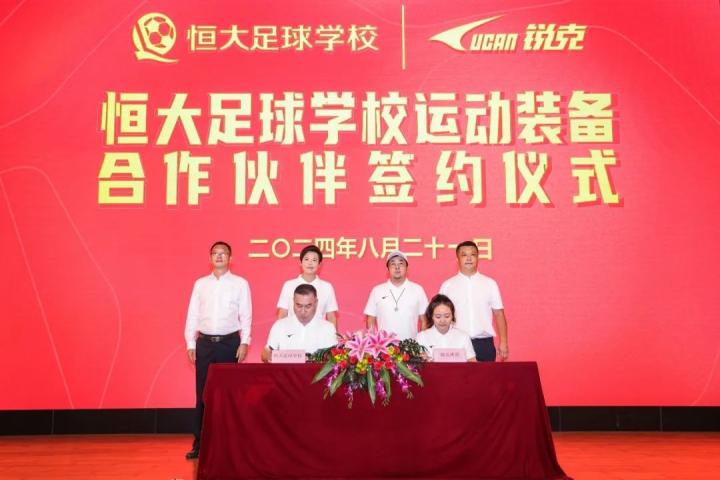 8月21日,广州市锐克体育用品有限公司与恒大足球学校运动装备合作签约仪式在恒大足校大礼堂隆重举行,双方正式达成合作伙伴关系,锐克体育成为恒大足校运动装备赞助商。出席签约仪式的有锐克体育公司总经理赵家怡、品牌总监冯晓漓,恒大足校校长刘倩、副校长李本全及学校中层干部。