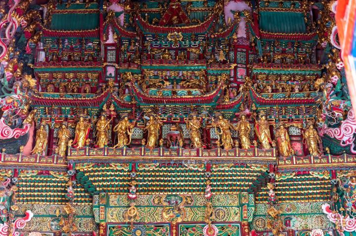 山西临汾,隰县小西天,上院大雄宝殿中的悬塑(摄于2023年9月)