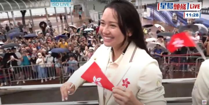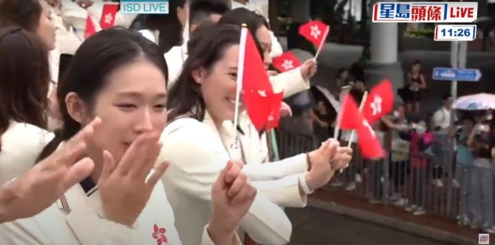 中国香港代表队在巴黎奥运会上取得了2金2铜的好成绩,港区政府在21日早上安排了代表团进行巴士巡游,沿途接受香港市民的祝贺。