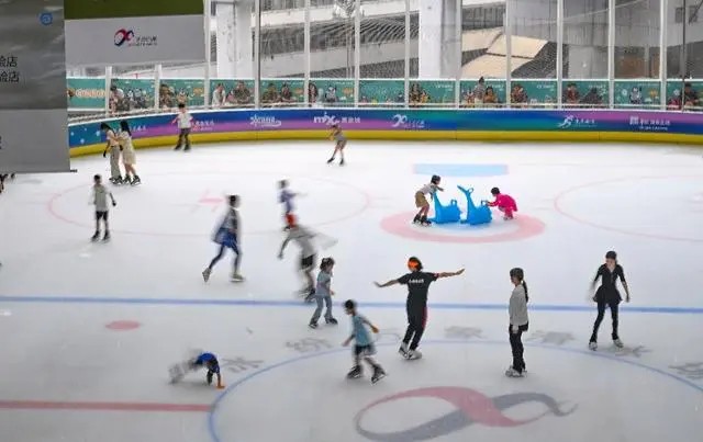 九龙坡区万象城溜冰池的孩子们