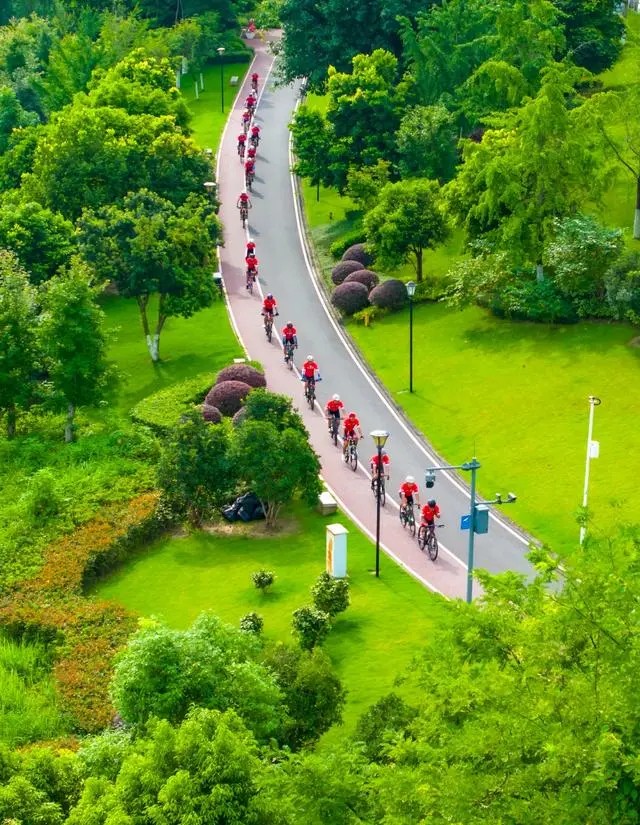 巴南区巴滨路生态骑行道上的骑行爱好者们