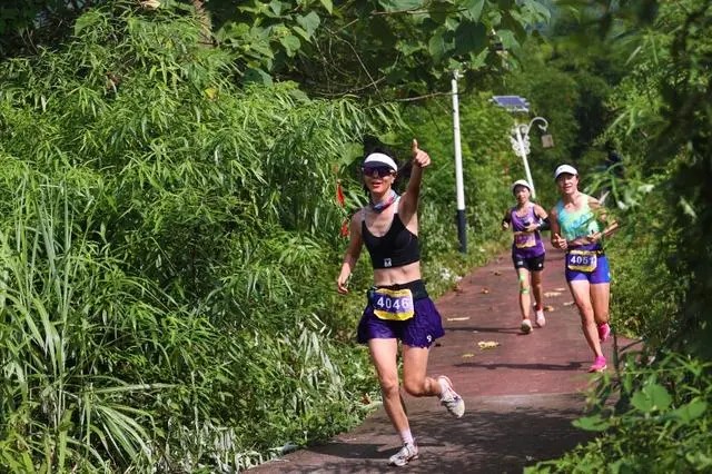 黔江区,山地马拉松参赛选手跑在阿蓬江国家湿地公园