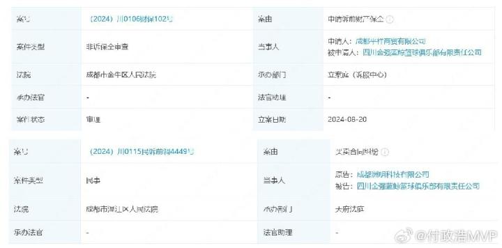 媒体人:四川金强男篮近日连遭昔日供应商和合作伙伴起诉凡尔赛小木屋 @懂球帝2024-08-22 11:478月22日,据媒体人付政浩的消息,四川男篮近日连遭昔日供应商和合作伙伴起诉。该媒体人写道:“哀我民企多艰。四川金强篮球俱乐部近日连遭昔日供应商和合作伙伴起诉,最近这次还被申请了诉前财产保全。一般申请财产保全的多是担心对方经营状况恶化、丧失债务履约能力。”上赛季CBA常规赛中,四川男篮仅取得4胜48负的战绩联盟垫底。展开更多