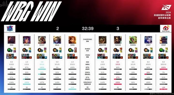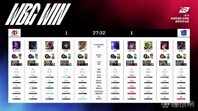 电竞赛事战报英雄联盟2024LPL夏季赛季后赛WBG vs LNG,WBG 3-2 LNG,WBG晋级败决成功会师TES。