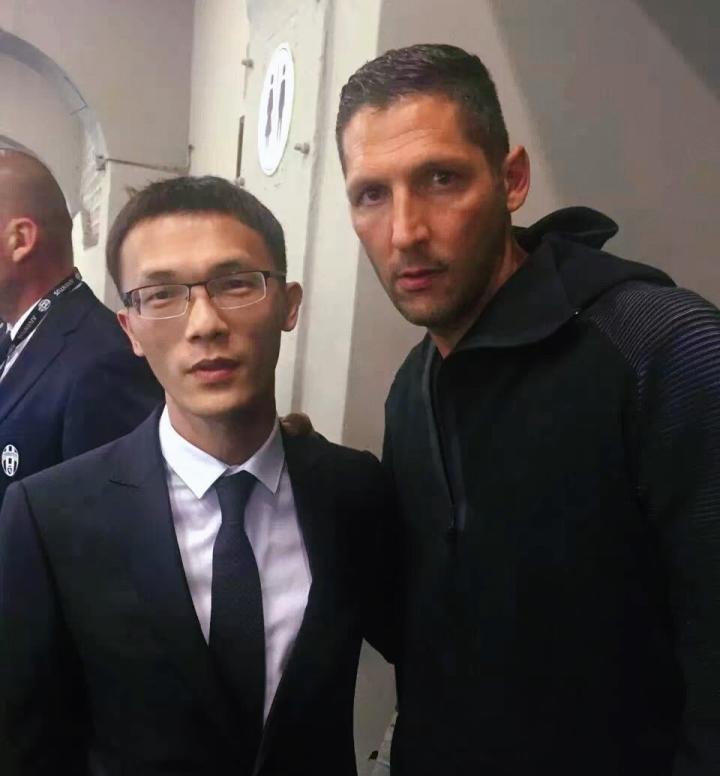 2015 年,陈聪跟苏宁去国米看球,和马特拉齐合影。