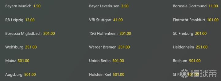2024-25赛季德甲夺冠赔率
