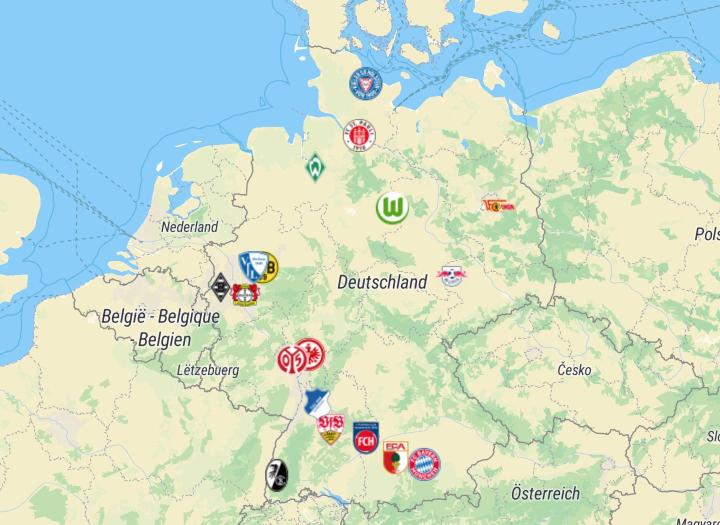 德甲18队地理分布:重心集中在西部与南部,最北迎来新面孔