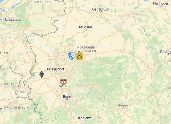 北威州下分五个行政大区。多特蒙德队位于阿恩斯贝格行政大区,这里还有一支德甲球队就是波鸿队。勒沃库森队位于科隆行政大区,门兴格拉德巴赫队则位于杜塞尔多夫行政大区。