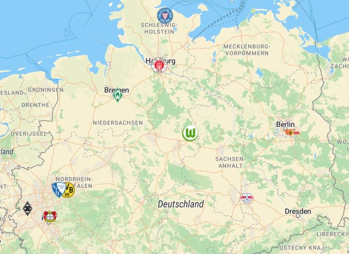 德甲的18支球队里,有12支位于西部和南部。在德国北部,有面积第二大的下萨克森州,其西部与荷兰接壤。下萨克森州的首府是汉诺威,这里的东南部有德甲球队沃尔夫斯堡。