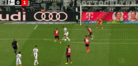 第18分钟,博尼费斯门前转身抽射,皮球击中横梁