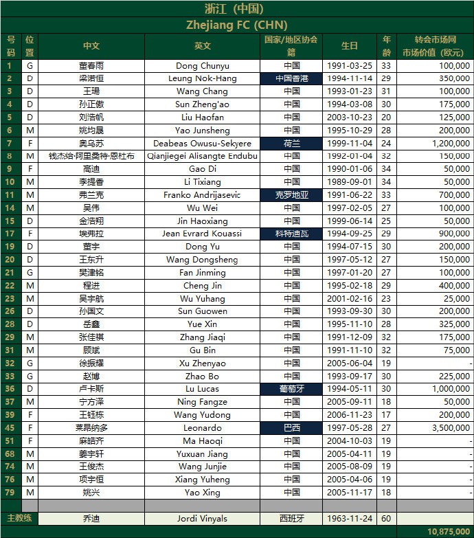 此外,尽管莱昂纳多因停赛将错过全部小组赛,浙江队仍将其列入亚冠二级联赛的大名单,因为球员的报名是完成停赛的必要步骤,而剩下7场停赛和5场停赛的姚均晟、董宇也属于类似情况。在亚冠二级联赛首轮比赛前5天,浙江队还能对名单进行调整。