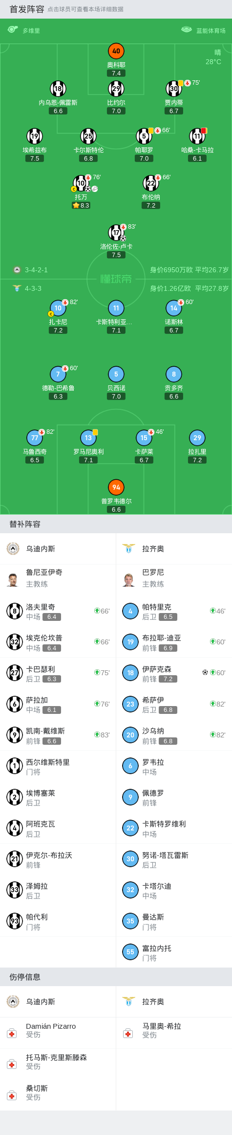 乌迪内斯2-1拉齐奥,托万传射,洛伦佐-卢卡破门