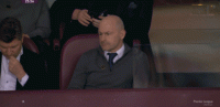 第25分钟,沃特金斯错失良机后,镜头给到英格兰临时主帅卡斯利
