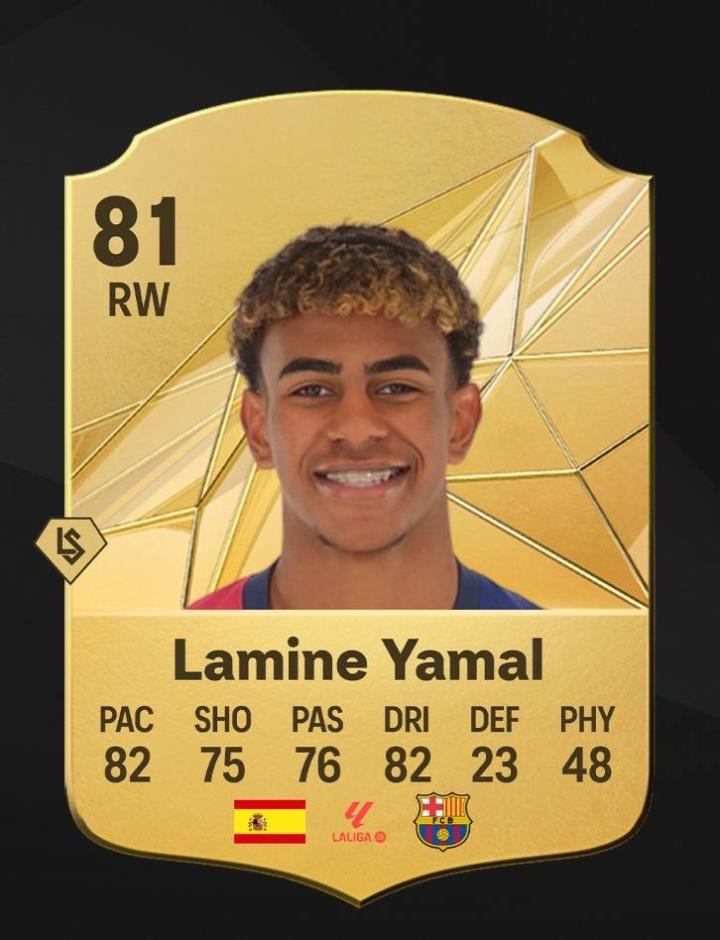 FC25亚马尔能力值遭到泄漏,81总评+82速度&盘带+75射门+76传球。