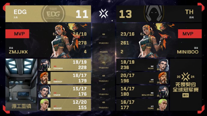 第9回合,TH混起,benjyfishy在B开启蝰腹,EDG转A但遭遇Miniboo浴室兜底三杀,4-5。