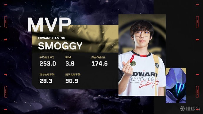 第5回合,EDG混起打B,Miniboo提前绕后打出双杀,好在Smoggy在底线三杀,3-2。