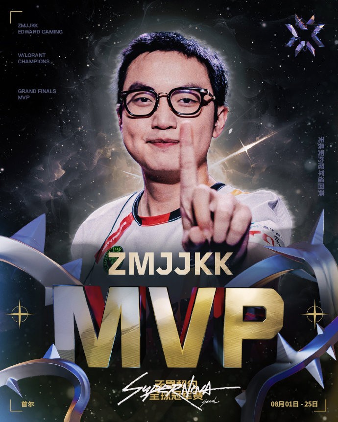世一决!官方:EDG_ZmjjKK荣膺2024无畏契约全球冠军赛MVP