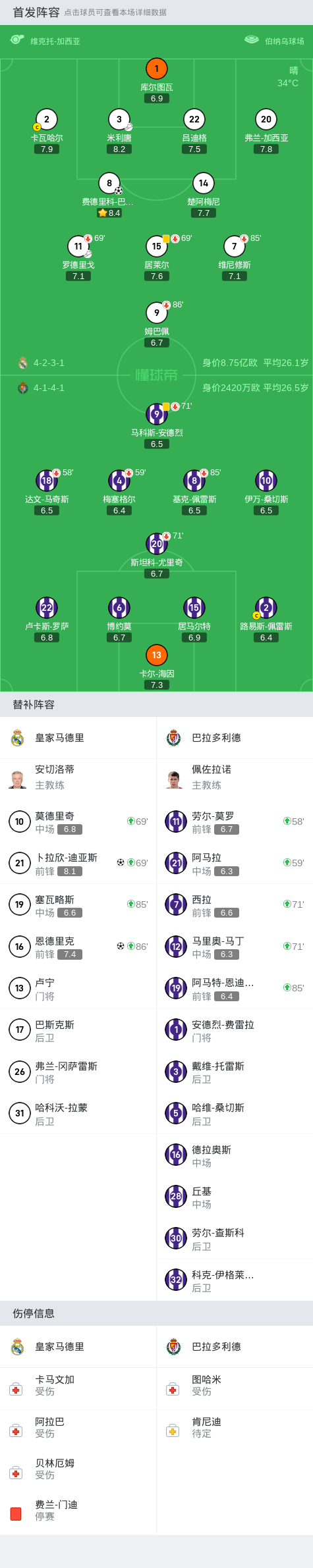 皇马3-0巴拉多利德,迪亚斯传射,恩德里克、巴尔韦德建功