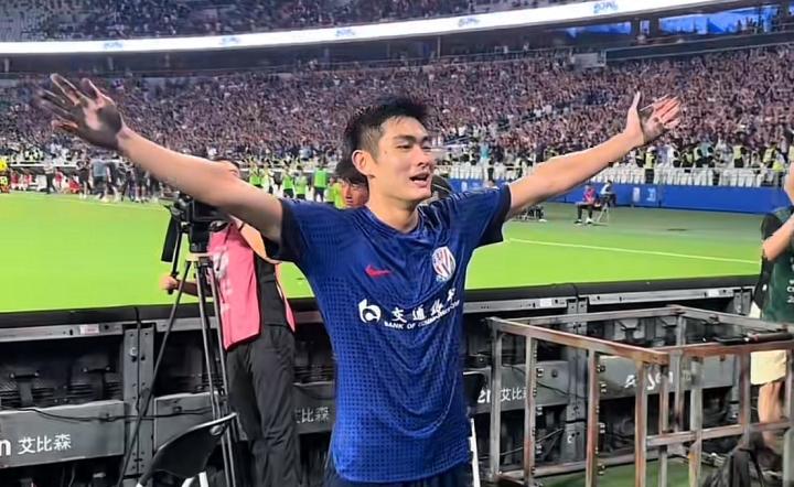 这场“京沪德比”对决中,陈晋一在比赛第63分钟替补出战。全场刚刚进入伤停补时阶段,陈晋一破门得分。进球后,他翻过广告牌,在看台前张开双臂庆祝,享受着球迷们的欢呼呐喊声。