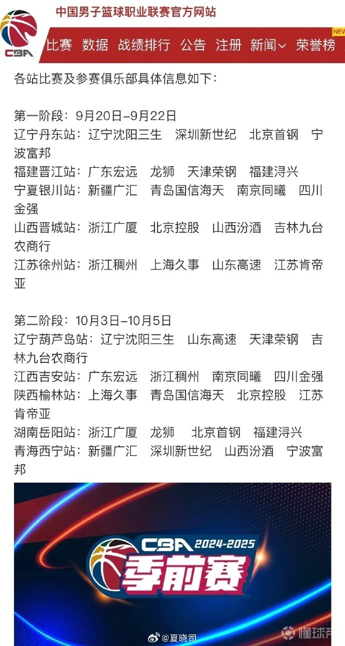 “今年的季前赛,山东男篮是9月份在徐州和10月初的葫芦岛两个赛区。 ”