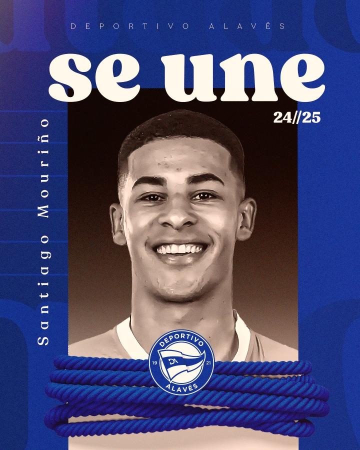 阿拉维斯官方宣布,马德里竞技22岁后卫圣地亚哥-莫里尼奥加盟球队,双方签约到了2029年。