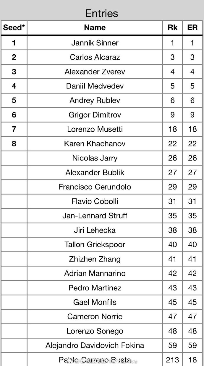 中网ATP参赛名单:top5有四位出战,德约科维奇缺席村儿里面的水獭 @懂球帝2024-08-28 00:528月27日,据网球博主透露,ATP500中国网球公开赛参赛阵容豪华,世界前五选手除德约科维奇外全部报名。世界第一辛纳将作为卫冕冠军出战,阿尔卡拉斯及前赛会冠军迪米特洛夫也在报名表内。除此之外,张之臻也直接凭借世界排名入围正赛。中国网球公开赛即将在9月23日至10月6日在北京举行,其中ATP为500级别赛事,WTA则为1000赛事,奖金设置丰厚。展开更多