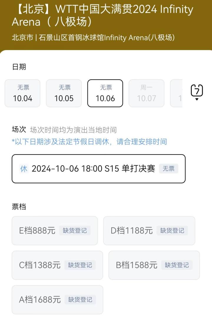 888-1688元,WTT中国大满贯第一阶段售票开启,决赛日门票迅速售罄