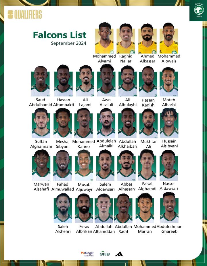 《足球》报表示,31人名单,刚刚以300万欧元转会到罗马,身穿12号球衣的边后卫阿卜杜勒哈米德领衔。可以看出,曼奇尼继续推行年轻化,但同时也保留了经验丰富的老将,30岁以上的老将有7人,23岁以下的年轻球员有6人,其中20岁的吉达联合前锋萨哈菲最小,此外,后卫西卜亚尼、中场加姆迪、前锋马兰和拉迪夫与萨哈菲都参加了4月的U23亚洲杯。