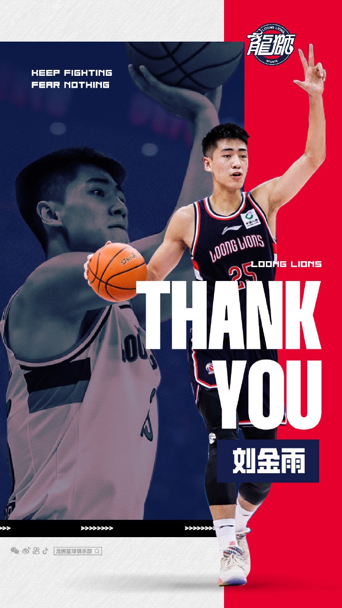 北京时间8月28日,广州龙狮男篮发布官方公告,小将刘金雨正式离队,同时迎来了今年5号秀邵炜昀。