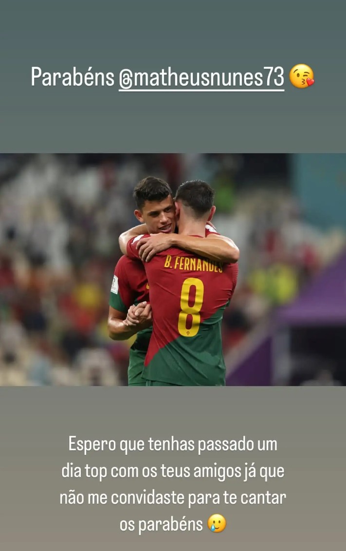布鲁诺-费尔南德斯在个人社媒上艾特努内斯送上祝福,还调侃了这位曼城中场没有邀请他参加庆生活动。