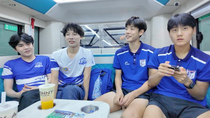 在大连英博的训练基地,诺言、橘子全程体验了一日足球运动员训练和生活,与大连英博队员一起参加基础训练、理疗、用餐等全过程,并进行了足球5v5、王者荣耀5v5互换角色的体验赛,感受不同项目的节奏和体育精神。晚上,双方代表还共同“夜游大连”,乘坐新开通的都市观光双层旅游巴士,从星海广场百年纪念城雕出发,前往东港威尼斯水城,游览大连都市夜景。