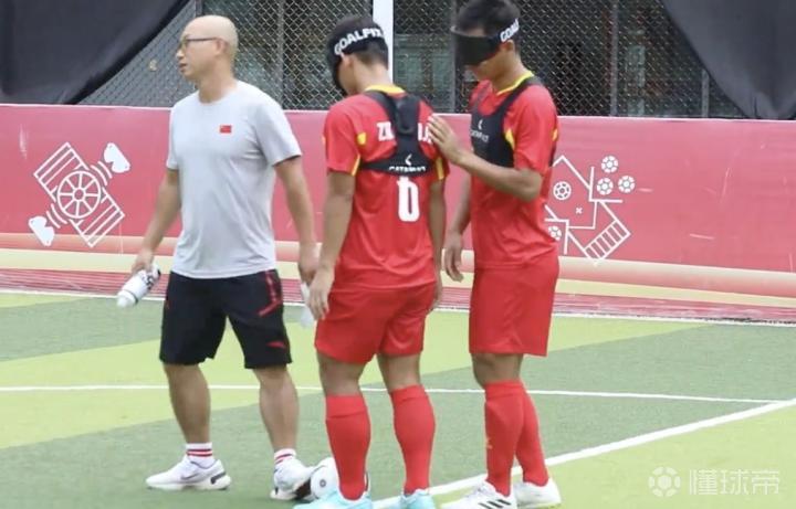 中国盲人足球队守门员吴利民是健全人。记者看到,适应性训练结束后,吴利民站在最前面,俞裕锬等队员依次将手臂搭在前一队员的肩上,离开了比赛场地。