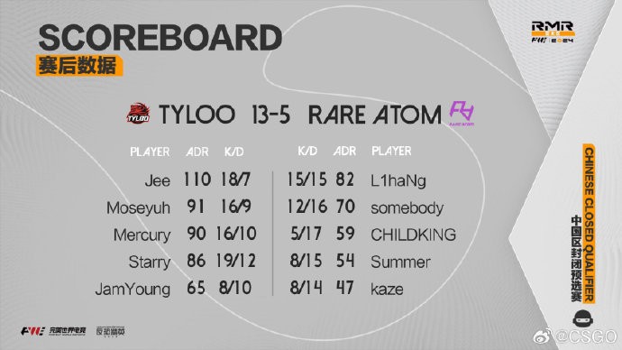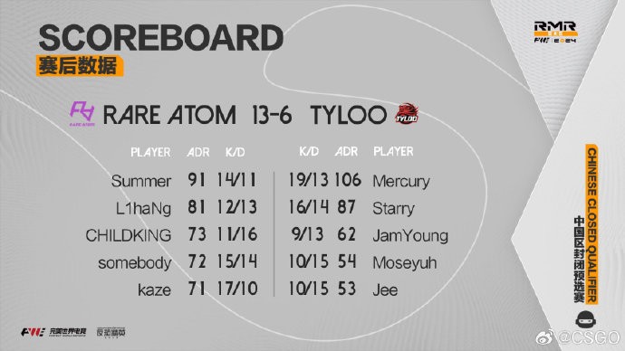 北京时间8月29日晚,CS2上海Major亚太区RMR中国区封闭预选赛,RA成功从8646支队伍中脱颖而出,最终复仇天禄,成功晋级CS2上海Major亚太区RMR。
