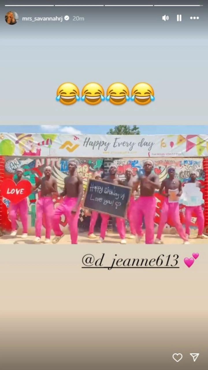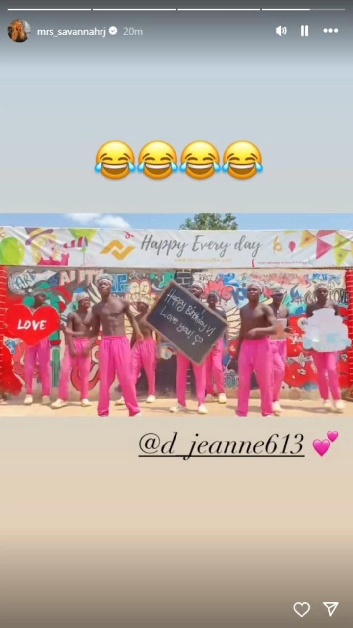 萨瓦娜在个人社媒上分享了这个祝福视频,视频中非洲祝福小组跳了短视频平台热门的舞蹈,并附带了其它多种祝福方式。