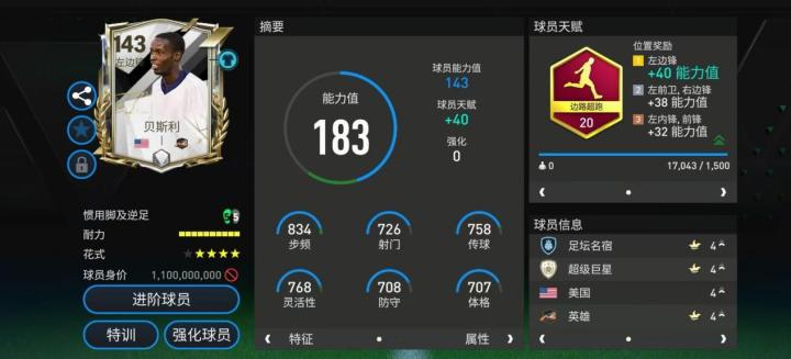 2002年世界杯赛场上,贝斯利是美国队中举足轻重的一位核心球员。美职联系列贝斯利配备边路超跑天赋,对他的加速、冲刺速度、长传、传中、盘带五项数据有所提升。高级油炸丸子搭配四星花式星级也让他的边路持球进攻能力更加出色。