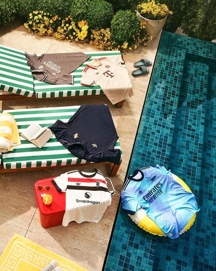 没错,这就是历史上第一次,阿迪达斯旗下五家ELITE club(精英俱乐部)联合发布第二客场球衣。其中最明显的变化就是阿迪采用了三叶草的logo,取代了常规的阿迪logo。阿迪自豪地称:「这不是简单的复古,而是崭新的一页」。