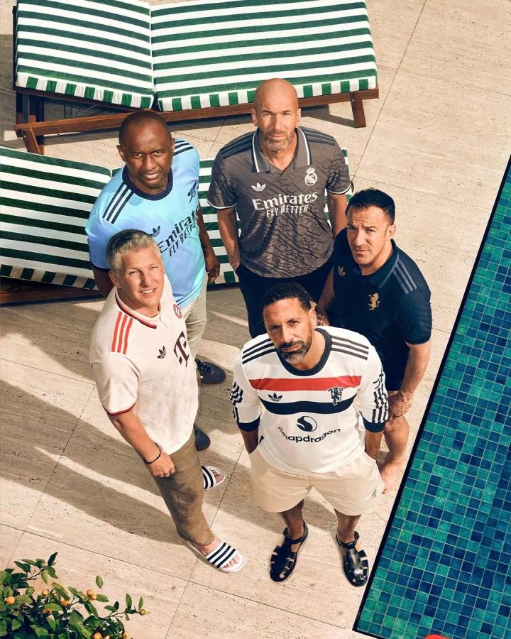 而这五个大叔正是齐达内、德尔皮耶罗、维埃拉、施魏因施泰格以及里奥·费迪南德。五位名宿倾情出镜,以各自的方式演绎诠释全新的第二客场球衣,唤醒球迷深处的记忆以及对俱乐部的归属感。