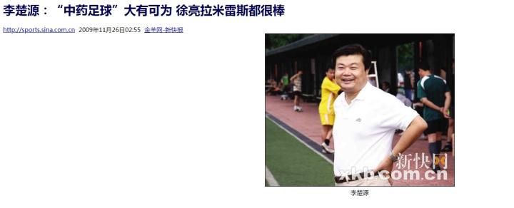 2009年,李楚源曾兼任广药足球俱乐部董事长,并大胆提出了“中药足球”的理念,再次让业界为之侧目。
