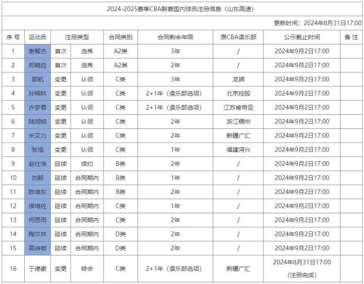 8月31日,CBA官网更新国内球员注册信息,山东男篮注册了16名队员,其中9名球员都是今年休赛期加入球队的新援。
