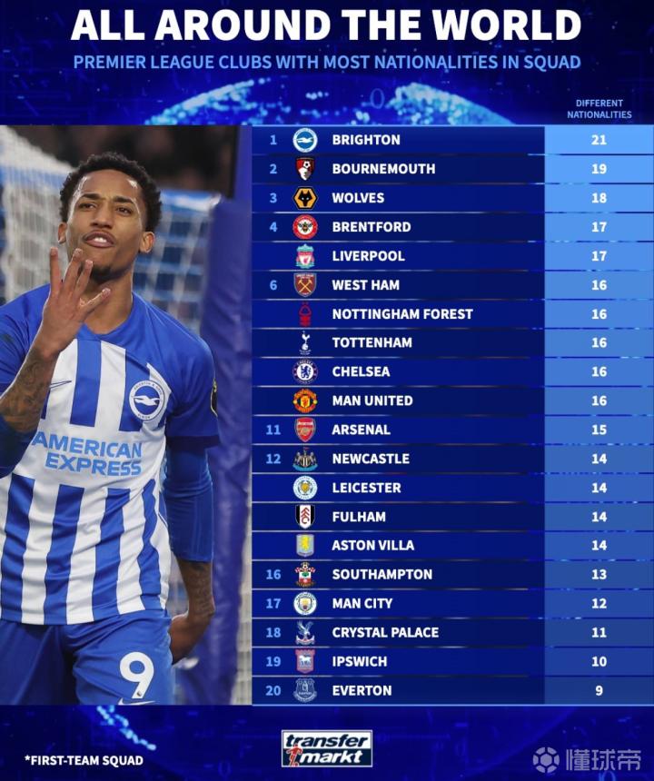 由于一线队编制有限,青年队赛事锻炼价值一般,布莱顿找到了比甲圣吉罗斯作为卫星队,大量来自非洲、南美、东欧和东亚的年轻球员在这里拿下了劳工证,为征战英超做准备。本赛季,布莱顿的一线队由来自21个国家的球员组成,成分之复杂在英超首屈一指。组建国际纵队不仅是大数据引援模式带来的结果,也是布莱顿扩大全球影响力的有效手段,开拓商业版图显然是布鲁姆的远景计划中重要组成部分。