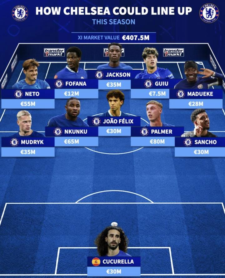 德转恶搞切尔西首发:10名中前场球员上阵,库库雷利亚守门来杯冰可罗 @懂球帝2024-09-01 14:31最近,德国转会市场恶搞了切尔西本赛季的首发阵容。他们排出的阵容派上了10名中前场球员,库库雷利亚守门。德国转会市场恶搞切尔西本赛季的首发阵容:前场:佩德罗-内托、戴维-福法纳、雅克松、吉乌、马杜埃凯、穆德里克、恩昆库、菲利克斯、科尔-帕尔默、桑乔门将:库库雷利亚本赛季截至目前,切尔西积3分,暂列英超第12位。展开更多