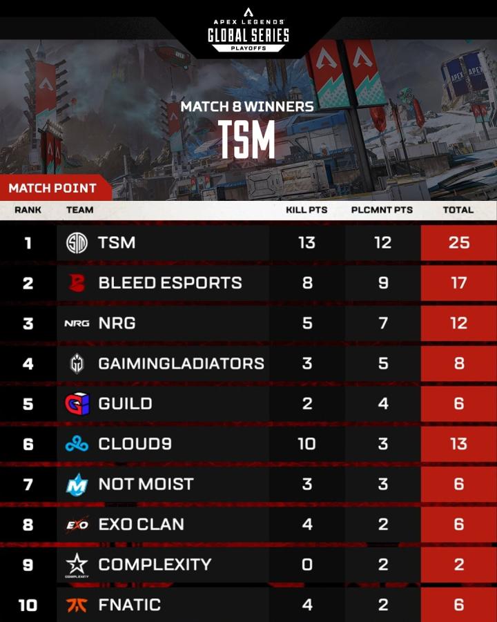 TSM梅花桩踩住高点,GUILD、GG、NRG接连被淘汰,TSM 25分吃鸡,比赛继续!