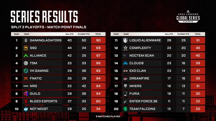 SSG夺得ALGS-Split2季后赛冠军;CN队伍VKG位列第8、DF第13