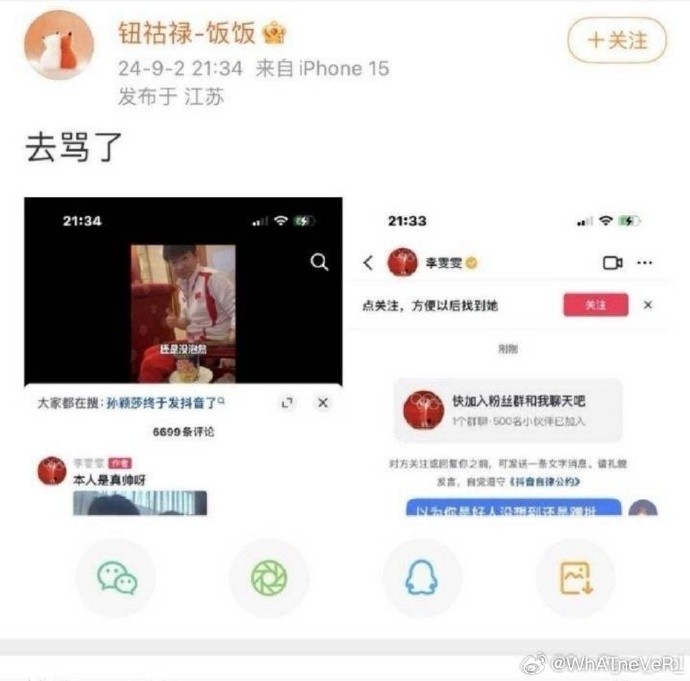 因被国乒CP粉攻击,奥运冠军李雯雯隐藏有关孙颖莎视频