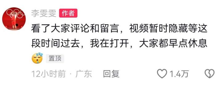 因评论区出现大量恶意言论,李雯雯选择隐藏掉了这一视频,并表示:“看了大家评论和留言,视频暂时隐藏,等这段时间过去,我再打开,大家早点休息。(这一内容发布于大概凌晨4点)”
