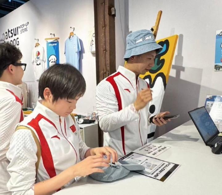 在此次访问港澳的活动中,马龙给全红婵买了果茶和帽子。
