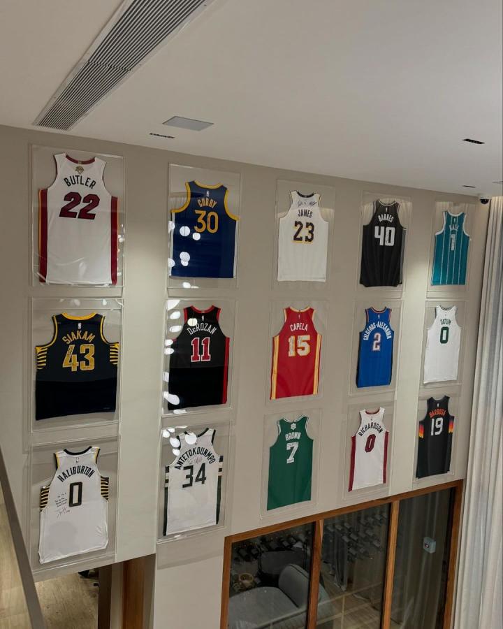 维尼修斯曾多次出现在NBA现场观看篮球比赛,和许多NBA球星都有私交,拿到这些球衣并不困难。