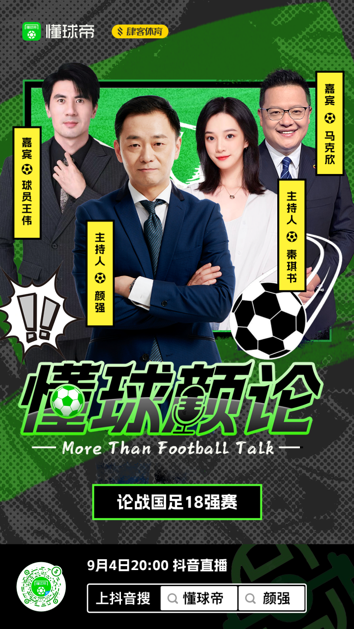 9月4日晚8点,《懂球颜论》将在线邀请媒体人马克欣、前上海申花队球员王伟,在线前瞻国足18强赛首战,欢迎到时来看!