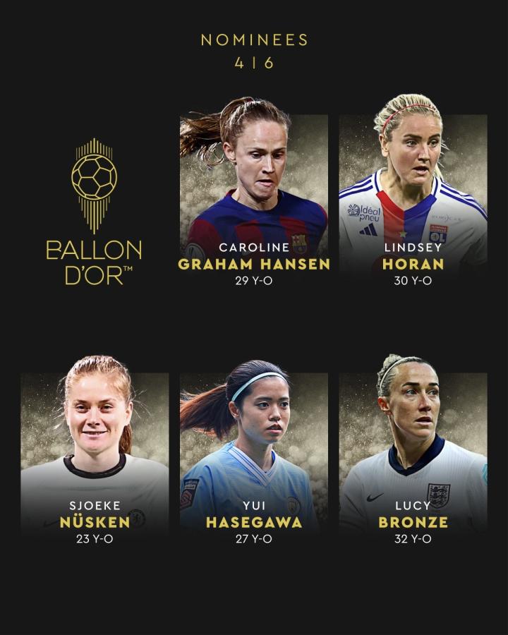 女足金球奖候选:邦马蒂、卡罗琳-汉森领衔,劳伦-詹姆斯在列