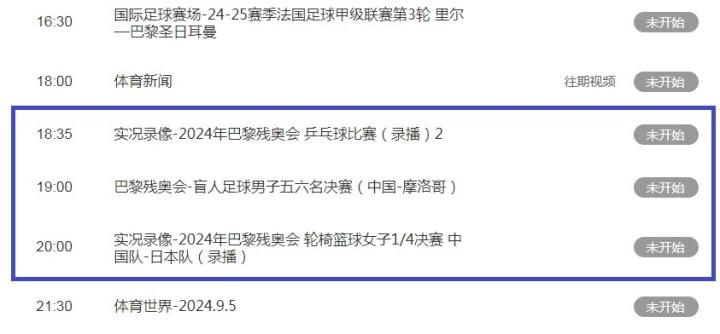 记者宋承良表示:“今晚中国队和日本队比赛,央视五套的节目单上并未出现这场比赛。节目预告显示,在相同时段,央视五套将先在18点35分播出残奥会乒乓球录像,19点直播残奥会足球5、6名决赛中国vs摩洛哥。与此同时,央视5+和奥林匹克频道也没有世预赛直播。当然,鉴于此前央视有过临时转播计划变动,本场比赛最终是否能在央视直播还是未知数。”